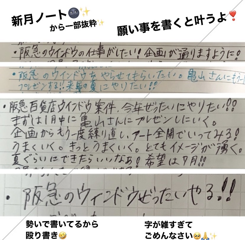 4月8日に個展が終わり、9日に搬出、その日は新月でした。新月には願い事を紙に書くと叶うよ、と友だちに教えてもらってから、新月の度に願い事を書いていました。