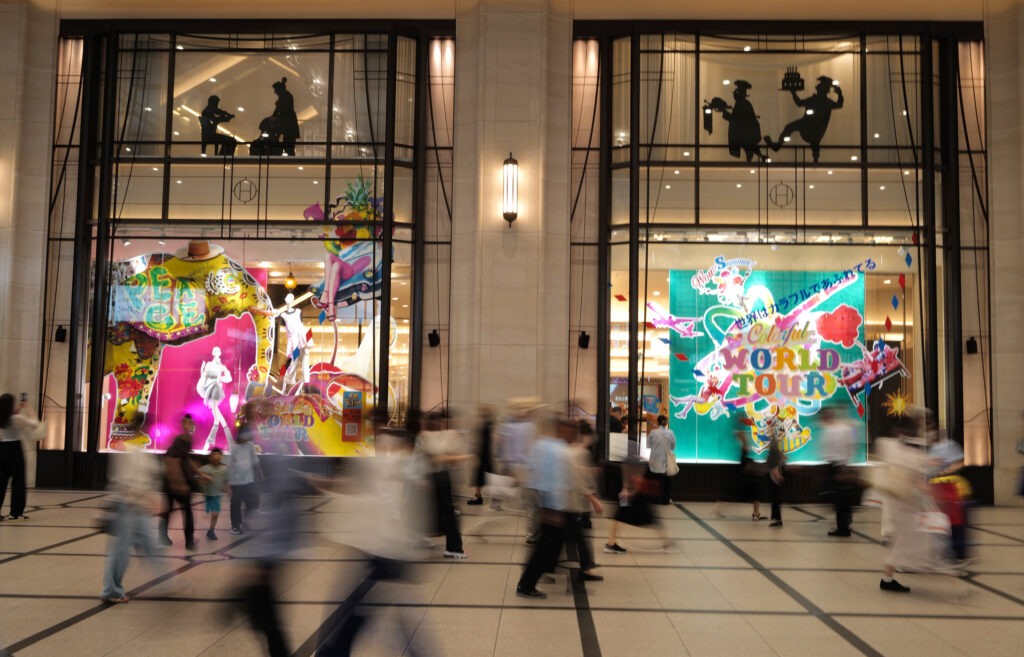 今回のウィンドーのテーマ『Colorful WORLD TOUR』は、亀山さんがSHIRACO WORLDを起用するために考えてくださった素敵なギフトなのです💝